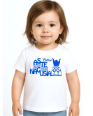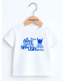 Camiseta bebe Aste Nagusia con la baldosa y Marijaia en color blanco.