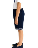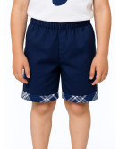 El conjunto de arrantzale infantil se compone de camiseta con Lauburu de Cuadros, pantalon de mahon corto con bies de cuadros en la parte inferior, fajin verde y pañuelo de hierbas.